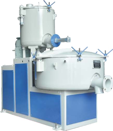 In a High Speed mixer the heat generated due to friction is utilized for mixing, hence it's known as "Heater Mixer". High speed mixers are used to mix solid to solid, liquid and pasty components. The Heating phase in a heater mixer it is not only the shortest possible cycle time which is the decisive factor, but in many cases, the way in which friction is introduced in to the product is of far greater importance.